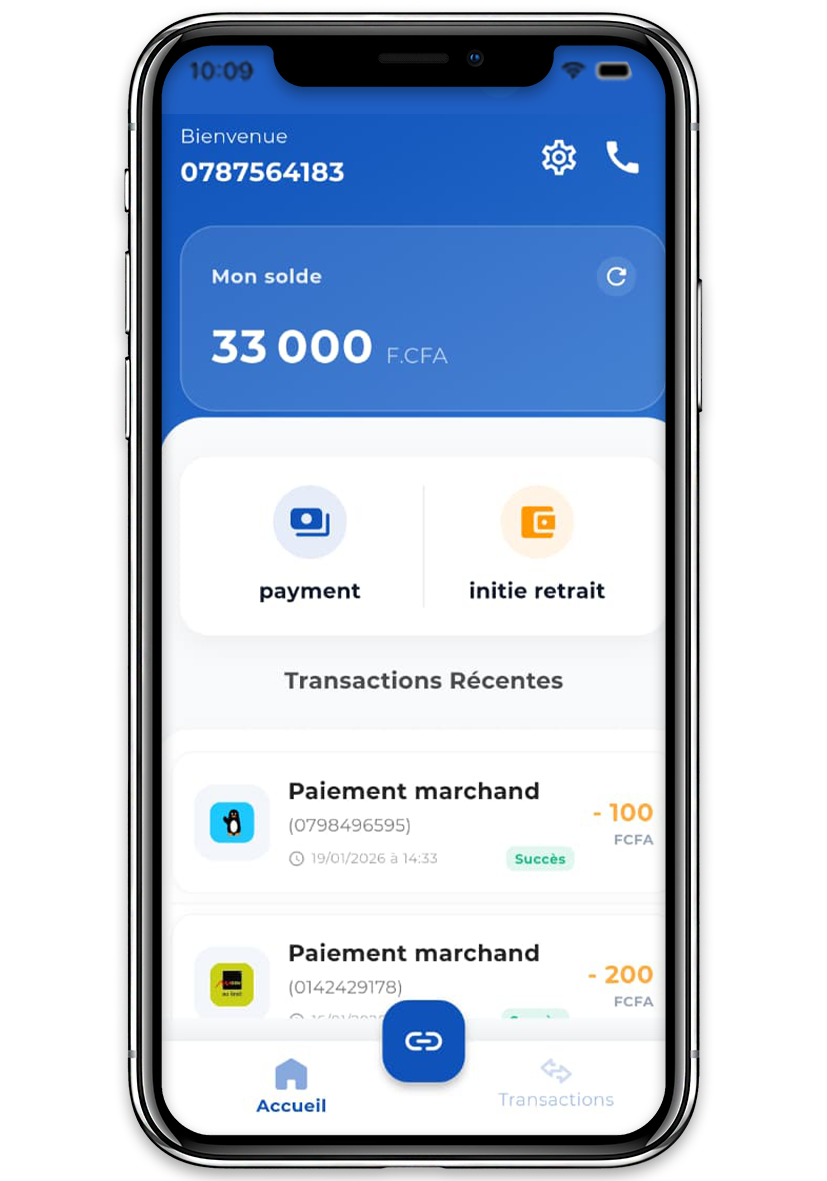 Générez un lien de paiement personnalisé et partagez-le par SMS, WhatsApp ou email. Vos clients paient en un clic, où qu'ils soient.