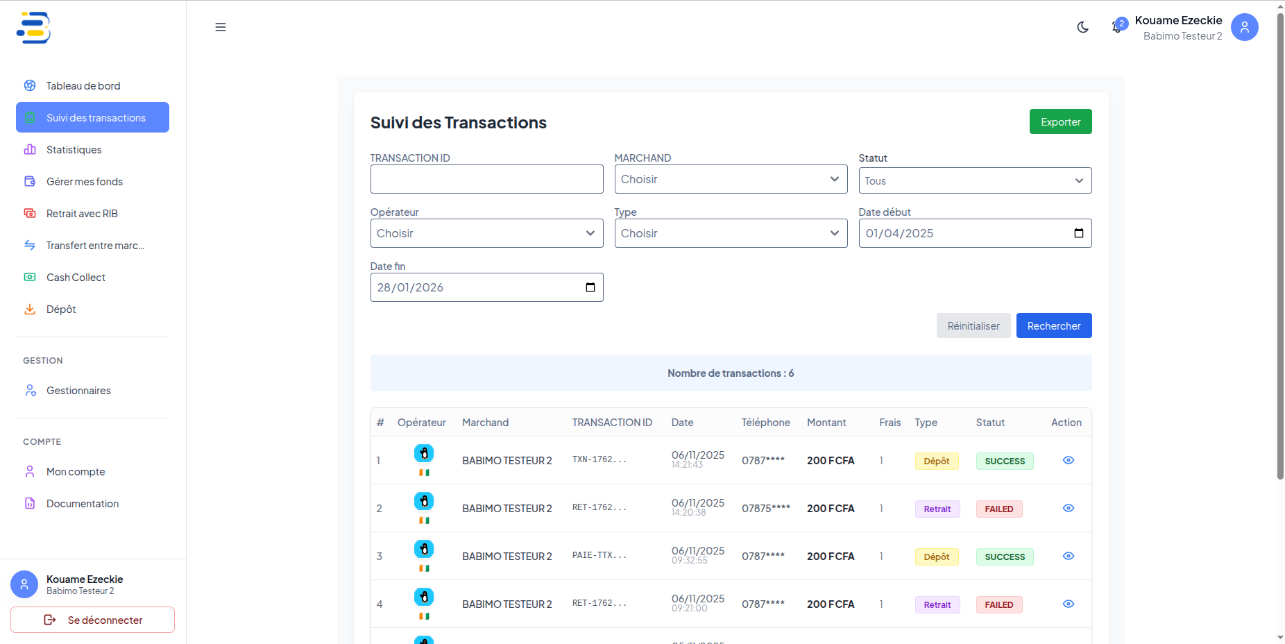 Le dashboard BPay est conçu pour vous offrir une vue d'ensemble instantanée et précise de toute votre activité financière.